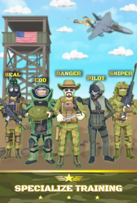 Velkommen til Idle Army Base: Military Tycoon. Driv en amerikansk militærbase, tren soldater og bli en strategisk hærkommandør. Bygg ut fortet ditt og forvandle rekrutter til elite-marinesoldater i dette engasjerende inaktiv-tycoon-spillet.