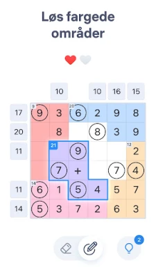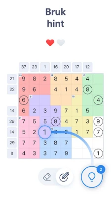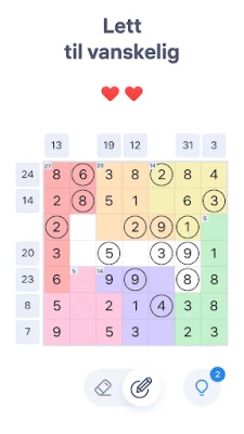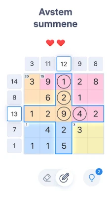 Velkommen til Number Sums, det nyskapende tallpuslespillet fra Easybrain som setter din logikk på prøve! Her er utfordringen å sørge for at summene i hver rad, kolonne og fargekodet seksjon stemmer overens med måltallene – alt samtidig. Din oppgave er å strategisk sirkle inn de korrekte tallene, mens du fjerner de som er overflødige, for å oppnå den perfekte balansen. Men pass på: hvert nivå i Number Sums har kun én unik og presis løsning, noe som gjør jakten på svaret ekstra tilfredsstillende.